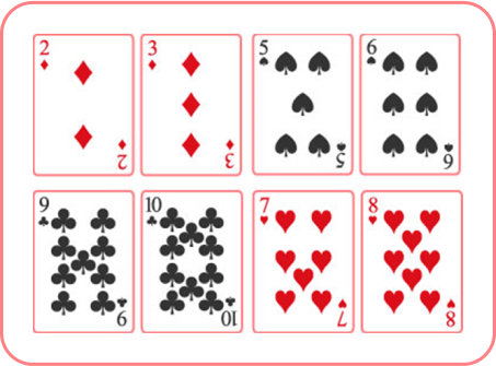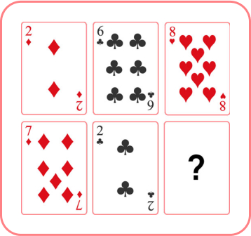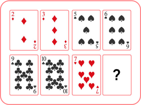 Ici, on voit que la couleur sera le cœur car la deuxième carte a la couleur de la première. C’est un 8 car la deuxième carte s’obtient en faisant +1 à la première.